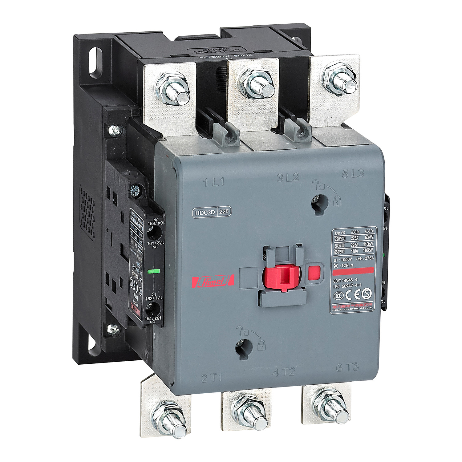 کنتاکتور HDC3225M از سری HDC3 برند معتبر HIMEL با جریان نامی 225 آمپر است که برای کنترل موتورهای سه فاز در کاربردهای صنعتی سبک و متوسط طراحی شده است.